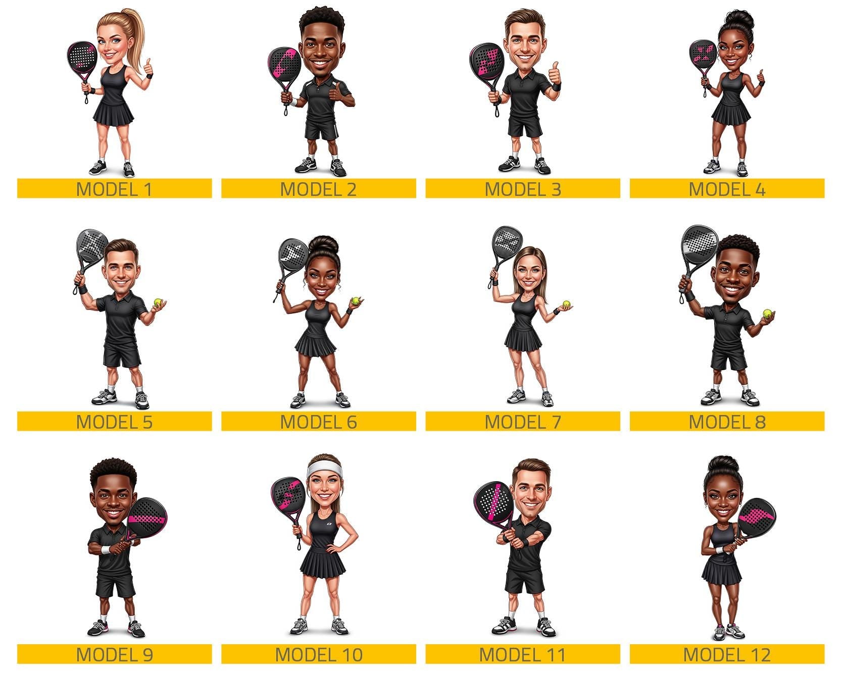 Custom Padel Tennis Player Figurine | Personalized Racket Sports Caricature from Your Photo | Padel Tournament Keepsake, Magnet, Keychain