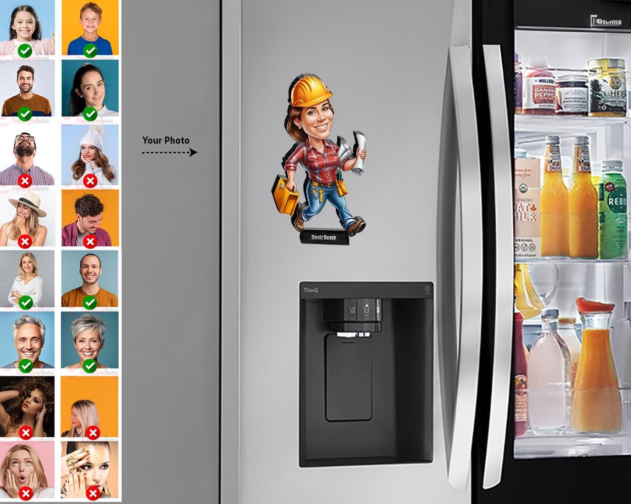 Funny Construction Worker Gift for Him | Custom Engineer Figurine with Hard Hat & Blueprints | Personalized Magnet, Keychain, Car Charm