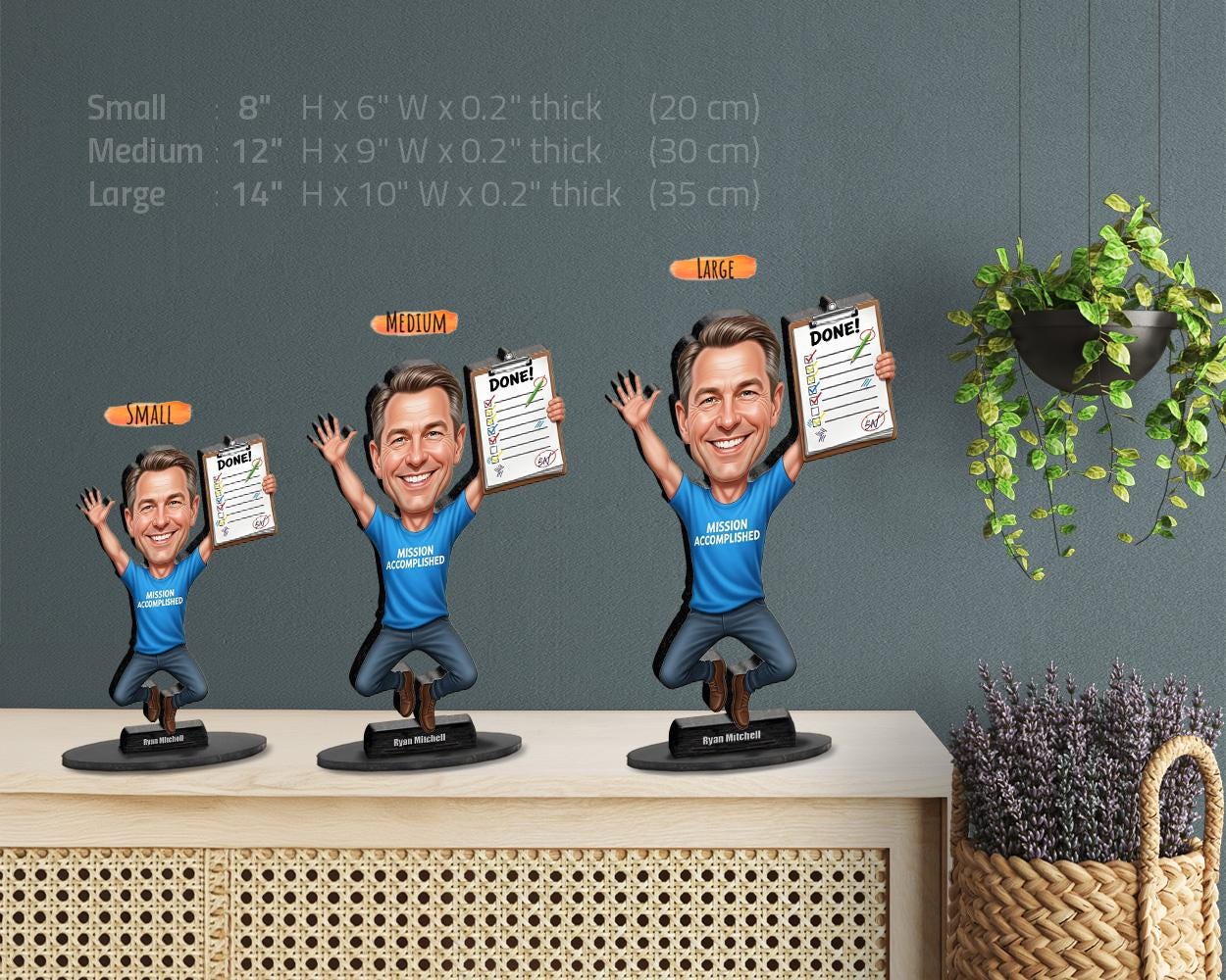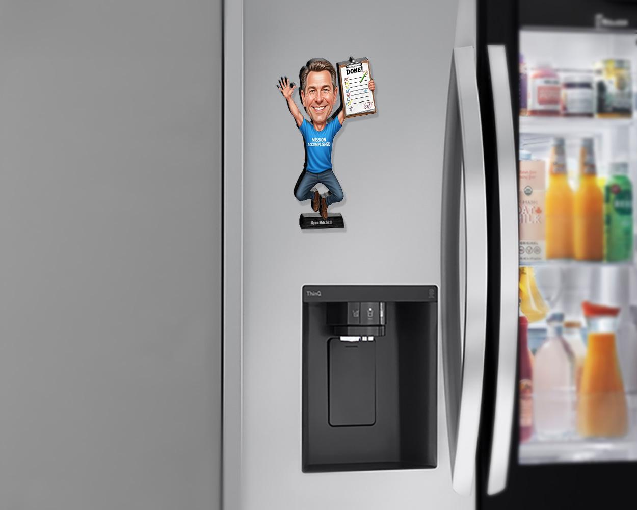 Funny Mission Accomplished Figurine Gift | Custom Goal Getter Caricature | Magnet, Keychain, Car Charm