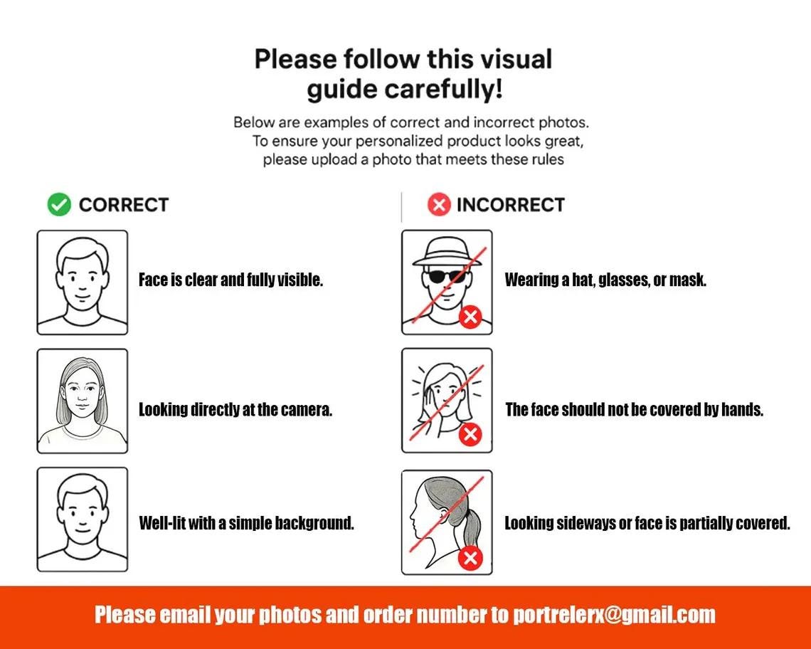 ⚠️ Important: The design is always based on the first confirmed photo. Changing the photo later is not possible.