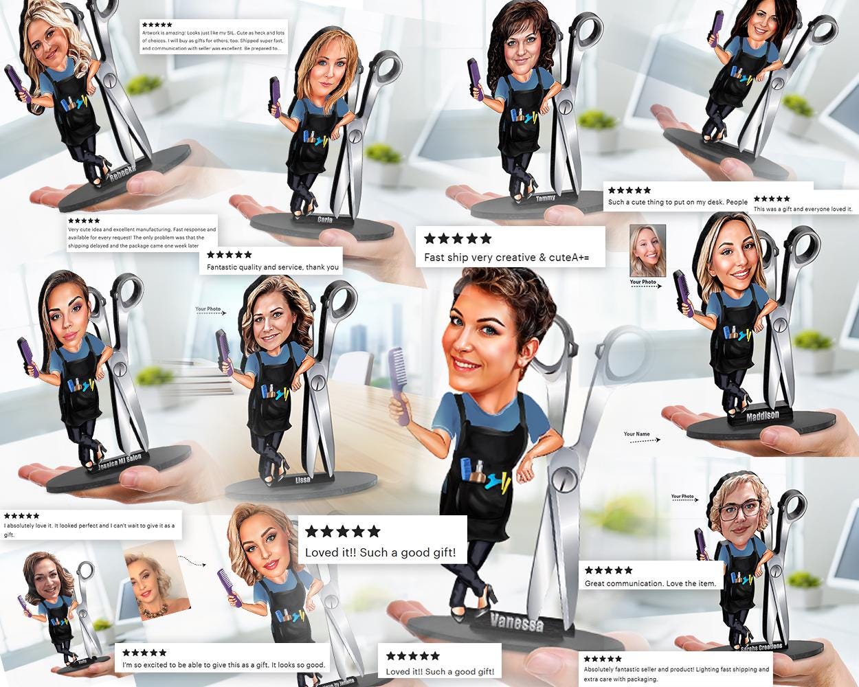 Personalized Hairdresser Gift – Custom Caricature Figurine, Magnet, Keychain & Car Charm 💇♀️✂️🎁 Celebrate your favorite hair stylist or barber with a fun and custom caricature! Whether they’re a salon owner, hairstylist, or barber – we’ll turn their photo into a big-head cartoon figurine that perfectly captures their style and energy! 💈✂️ Available as a wooden statue or acrylic magnet, keychain, or car charm – it’s a creative gift they’ll proudly display in the salon or take on the go! Perfect for: 🎉 Client appreciation 🎂 Birthdays 💈 Grand opening gifts 💇♀️ Hair salon or barber shop decor 🛠️ Product Options: • Wooden Figurine: – Small: 8 inches (20 cm) – Medium: 12 inches (30 cm) – Large: 14 inches (35 cm) • Acrylic Options: Keychain, Magnet, or Car Charm – Size: 3–3.5 inches (8–9 cm) Thickness: 0.2 inches (5 mm) – clear acrylic 📸 Photo Guidelines: • Send a high-resolution, front-facing photo • Avoid hats, sunglasses, or obstructions • If blurry, send 1–2 additional images 🎨 Design Info: • The body is fixed – only the head is personalized • Big-head cartoon style for a cute and playful effect • AI-assisted caricature drawing (not fully realistic) • A preview is shared before printing. 📝 Personalization Note: Please enter only the name (first or full). Long texts will not fit on the product base. 📦 Production & Shipping: • Production time: 3–5 business days • Shipping time varies by country • Need it faster? Buy express delivery here: 🔗 https://figurist.etsy.com/listing/1758402105 💳 Cancellation & Refund Policy: Custom orders are partially refundable. A design fee will be deducted for the artwork. 📥 How to Order: Choose your item type Enter the name Send the photo via Etsy message or email: portrelerx[!at]gmail.com 🕒📦 Note: When your design is ready, we’ll send you a preview message. If we don’t hear back from you within 24 hours, we will take it as approved and start production to ship your order on time. ⚠️ IMPORTANT – Preview & Cancellation Policy 📌 Please read before ordering! We kindly ask you to send your best and final photo with your order. Each caricature takes hours of design work, and every order is personalized just for you. 🚫 No free redesigns after preview Once the preview is sent, we cannot accept changes like “I don’t like it, please use a different photo.” This delays our workflow and affects other customers waiting in line. 💳 What happens if you change your mind? If you’re not happy with the preview and want to cancel the order, that’s okay – But a partial refund will be issued, as we deduct the design fee for the work already done. 🙏 Thanks for your understanding – this helps us deliver fast, fair, and high-quality service to everyone!