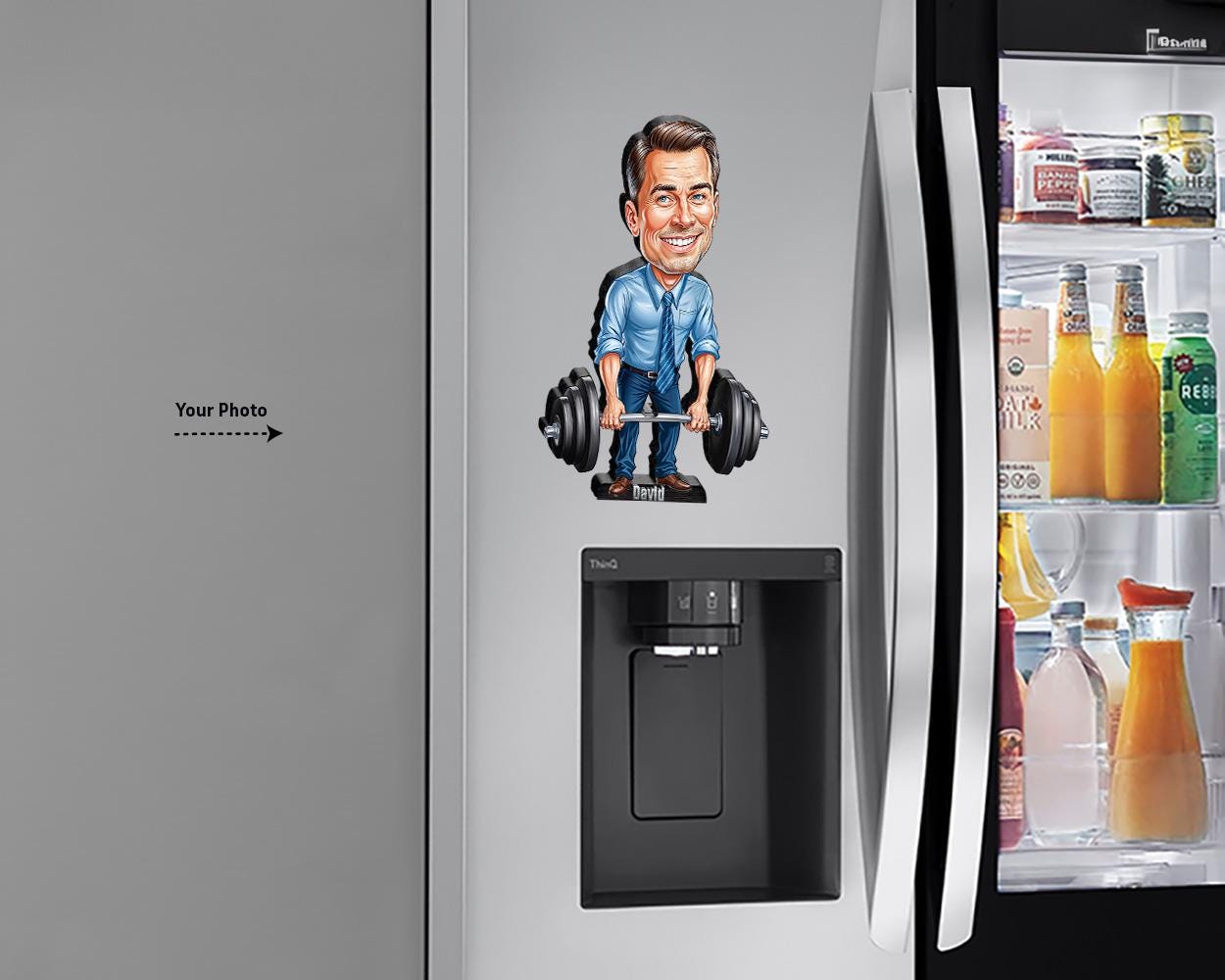 Office Worker Gift | Strong Boss Figurine β Funny Personalized Caricature with Barbell β Custom Magnet, Keychain & Car Charm