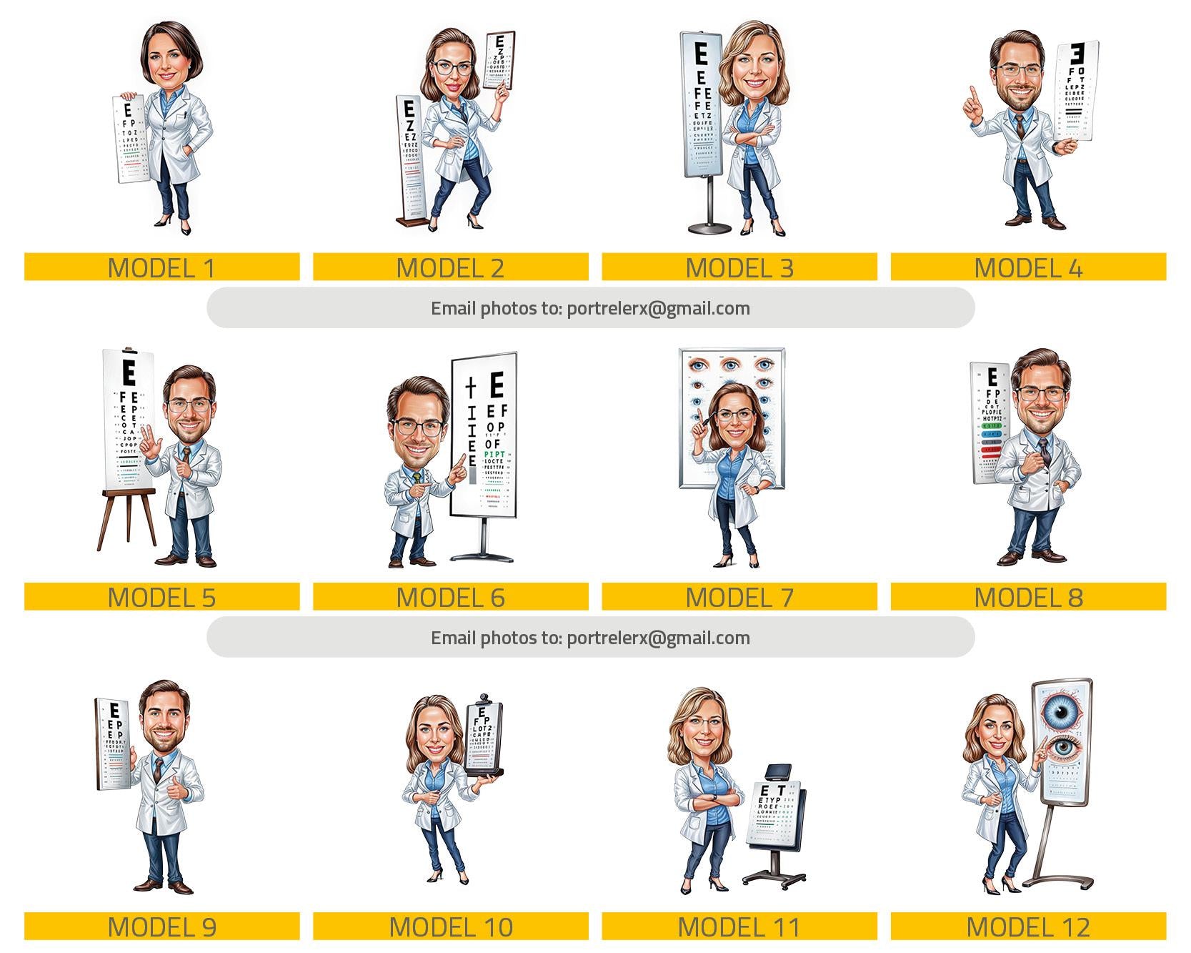 Looking for a thoughtful and fun gift for an optometrist, optician, or eye doctor? Whether it's for a clinic owner, a vision specialist, or a recent graduate – we turn their photo into a fun, big-head cartoon-style caricature!