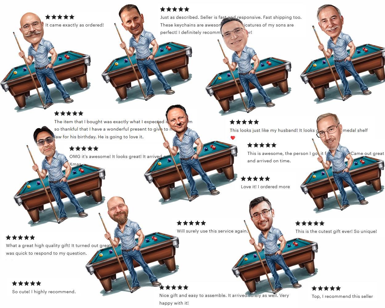 Personalized Pool Player Gifts | billiards Player Caricature Portrait From Your Photo | Funny Gift Sets with Your Photo & Name | BL2127